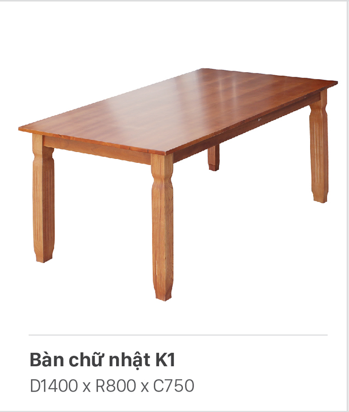 Bàn chữ nhật K1 của Hoàng Anh Gia Lai được thiết kế đơn giản nhưng tinh tế với đường nét sắc sảo gồm: