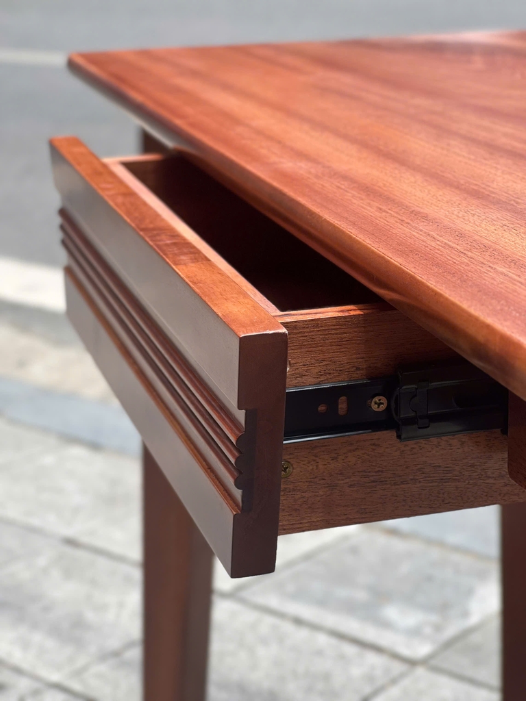 * Phần hộc kéo được thiết kế tỉ mỉ với những đường chỉ chạy ngang tinh xảo, tạo nên điểm nhấn mềm mại giữa tổng thể tối giản. Tay nắm được giấu khéo léo, vừa giữ vẻ thanh thoát, vừa mang lại sự tiện dụng khi sử dụng. Ray trượt kim loại chắc chắn, vận hành êm ái – một chi tiết nhỏ nhưng thể hiện sự chỉn chu trong từng đường nét thiết kế.