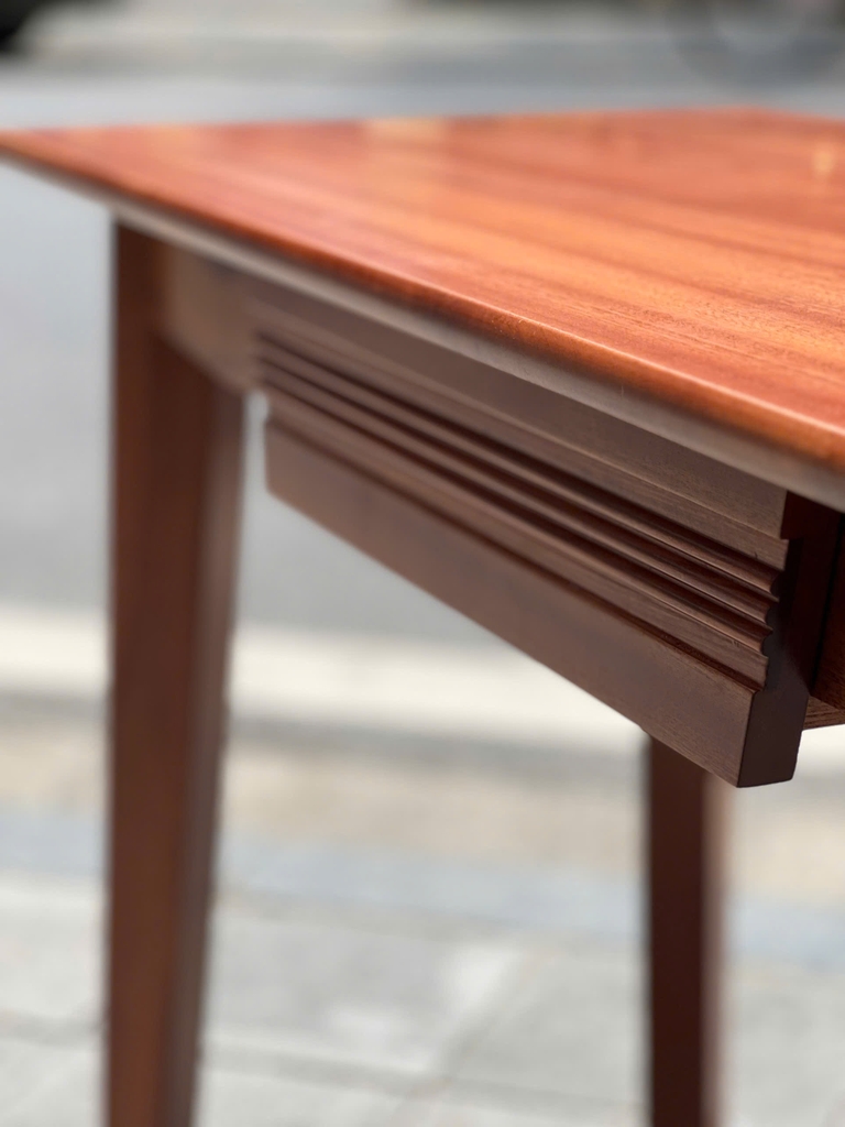 Bàn làm việc 1m1 : 1150 x 500 x 750 (mm) (Nâu) được làm hoàn toàn từ 100% gỗ tự nhiên, Veneer Xoan Đào, đã được tẩm sấy và qua quy trình xử lý chống cong vênh, co ngót và mối mọt, đảm bảo chất lượng sử dụng tốt nhất. Bề mặt được xử lý kỹ, phủ sơn bóng / mờ giúp giữ nguyên vân gỗ tự nhiên và chống trầy xước, ẩm mốc.