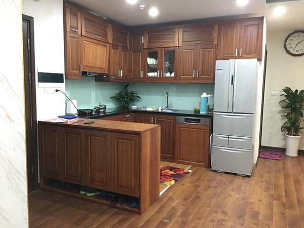 Nội thất tủ bếp gỗ tự nhiên phong cách tân cổ điển sang trọng