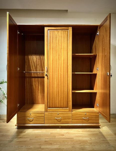 Tủ áo 2b3c pano vuông được thiết kế khá đơn giản mang phong cách cổ điển, các cánh tủ với thiết kế đường viền thẳng tạo thành một khung pano chữ nhật lớn kết hợp với đường vân gỗ tự nhiên mềm mại thoắt ẩn thoắt hiện trải dài bề mặt tủ tạo nên một bức tranh vô cùng độc đáo và sinh động, đây cũng chính là điểm nhấn nổi bật mang lại giá trị cho tủ quần áo gỗ, khiến bất cứ ai ngắm nhìn cũng đều vô cùng tò mò, thích thú và không thể rời mắt.